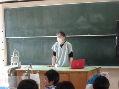 講話では、むし歯ができる原因や、毎日の歯みがきの大切さについて、分かりやすくお話をしていただきました。児童は、歯の健康を守るために、どのようなことに気を付ければよいのかを真剣に聞いていました。