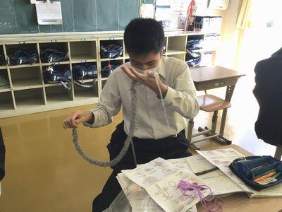 1m70cm程の長さまで編んでから、たわしの形に仕上げるそうです。次回の授業で完成とのことです。