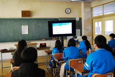 2月9日(月)に、2年生の3名が沖縄県竹富町で経験し、学び、感じたことを校長室から各教室にオンラインで配信しました。3名は、宮城と沖縄の気候の違い、それによる自然や生態系の違い、悲惨な戦争の歴史から感じたこと。大原中や波照間小中での交流活動から学んだこと(未来の地域コミュニティーの在り方を含めた防災対策等)を堂々と発表していました。各学級で発表を聞いていた生徒たちは、画面を見ながら集中して話に聞き入っていました。来年度の探究学習に生かしていってほしいと思います。