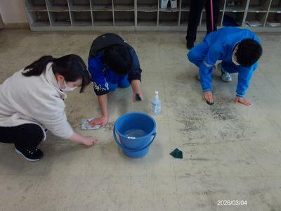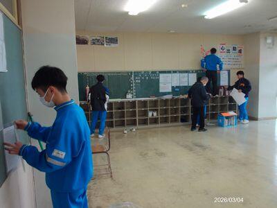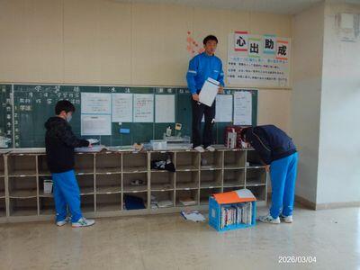 今日は宮城県公立高校の入試日ですが、他の学校へ進学することが決まっている生徒にとっては通常の登校日です。その生徒たちは担当の先生方と一緒に、3年生教室の掲示物を全てはがし、床をきれいに磨き上げ、ワックスがけの作業を黙々と行っていました。他にも会議室の机運びや、3年生が使用している机や椅子の汚れ落としまで・・・。少ない人数でも、あっという間に作業を進める姿、本当にすばらしかったです。お疲れ様でした!