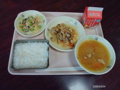 ごはん 親子丼の具 枝豆のサラダ どさんこ汁 牛乳 848㎉