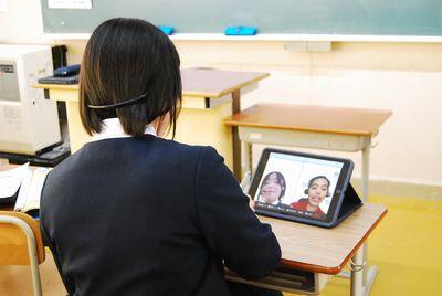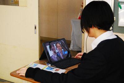 4校時に3年生が3回目のオンライ英会話にチャレンジしました。3年生ということ、3回目ということもあり、かなりスムーズに会話をしている様子がみられ、時には笑顔が見られるなど、成長を感じました。