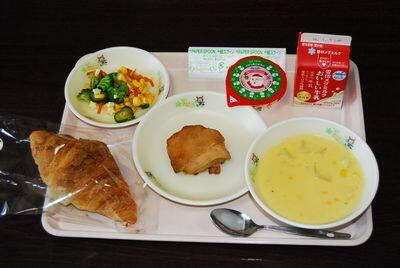 クロワッサン 照り焼きチキン クリスマスサラダ コーンポタージュ