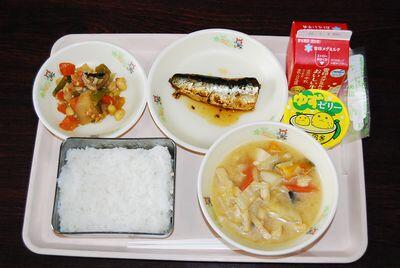 ごはん いわしの梅煮 五目豆 南瓜のみそ汁 ゆずゼリー 牛乳 804㎉