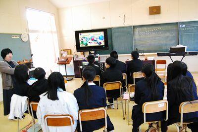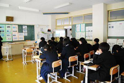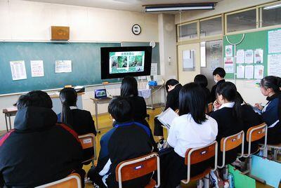 今日は、今年度学びを進めてきた個人の探究学習成果発表です。それぞれ交互に発表し合い、Q&Aの時間を持ちました。お互いの姿が画面で確認するのですが、こちらでは冬服やジャンバー、膝掛け。大原中さんの多くはワイシャツ(半袖も!)姿。このことでも、かなり違う環境で生活していることを強く感じました。