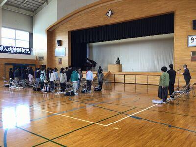 ↑新入生呼名の様子。元気に返事をしていました。在校生もリハーサルに参加しました。