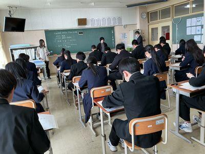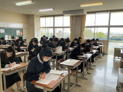 3年生の生徒たちは始業前に過去問題を復習している様子が見られました。生徒たちは国語、数学ともに集中して調査に臨んでいました。