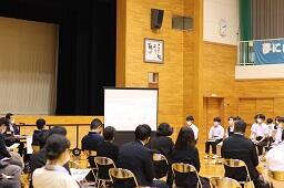 また午後には、アクサユネスコ減災教育プログラム教員研修会に参加されている全国の先生方が来校され、3年生の生徒たちとの交流会が行われました。生徒たちは体験活動や探究学習、語り部活動など、自分たちの取組について発表しました。参加者の皆様からたくさんのご質問や励ましの言葉をいただきました。