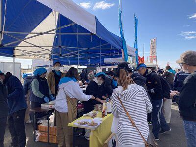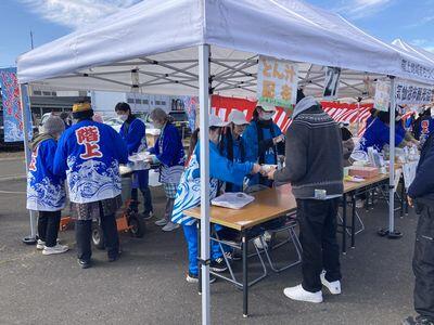 ↓ 階上小中PTA出店の「さざなみや」も大盛況 カキ汁が飛ぶように売れました