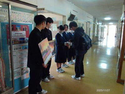 今日の昼休みに、3年生4名(吉田さん、小野寺さん、小野寺さん、三浦さん)が、18日に発生した大分県大分市佐賀関の大規模火災で被災した皆さんを支援したいと、募金活動を行うことと、その協力者の呼び掛けを行いました。先日の穐葉神社清掃といい、今回の募金活動といい、生徒たちの機動力には目を見張るものがあります。