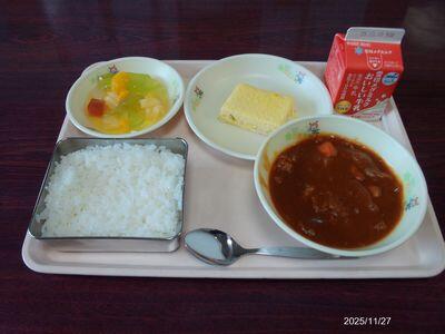 ごはん キッシュ風オムレツ ポークハヤシ フルーツのゼリー和え 牛乳 842㎉