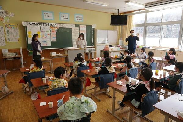 令和7年度に本校に入学する唐桑保育所,松圃幼稚園,唐桑幼稚園の子どもたちが来校し,授業体験を実施しました。1年生の教室で算数の授業を体験してもらいました。教科書を使っての初めての授業に,体験した子どもたちは緊張気味でしたが,一生懸命に教員の話を聞いて学ぼうとしていました。現1年生のアドバイスもあり,徐々に安心して授業に取り組む様子が見られました。新1年生の入学が楽しみになるとともに,現1年生の成長も感じられる交流活動となりました。