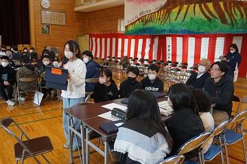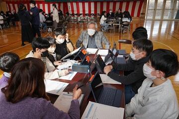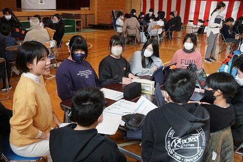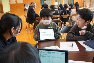 地域の皆様をお迎えして,5・6年生の「海と生きる探究活動」のまとめとして座談会を開催しました。グループワークでは「唐桑の未来を考えよう~魅力・活気・希望あふれる唐桑にするために~」をテーマに,子どもたち個々の探究活動を踏まえた自分なりの考えや思い,実現させたいことやその方法などについて話し合いました。地域の方々や探究コーディネーターからは子どもたちの考えに対し,たくさんの質問やアドバイスをいただきました。地域の皆さんの,子どもたちに対する期待度が伝わってくる座談会となりました。講評をいただいた探究コーディネーターからは,子どもたちの探究について,「身近なところから考え,行動していたこと」をお褒めいただきました。また,これからは「やりたいことを理想としてイメージして結びつけて,これからも探究を楽しんでほしい」とアドバイスいただきました。