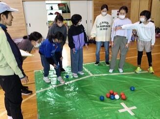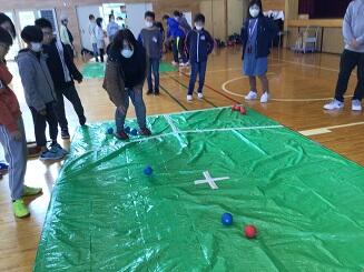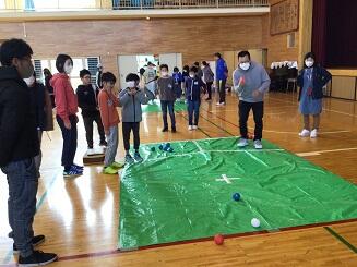 11月6日,5年生のPTA親子行事を実施しました。志津川自然の家から講師をお迎えしてニュースポーツ「ボッチャ」体験をしました。はじめはうまくボールを投げることができませんでしたが,回を重ねるごとに上達し,数々のスーパープレーも飛び出しました。親子で親睦を深めるよい機会となりました。学年委員の皆様,当日までの御準備,運営,お世話様でした。