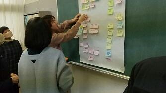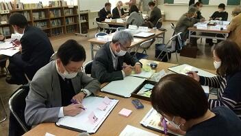 11月20日,唐桑中学校にて,唐桑中学校区学校運営協議会を開催しました。学校運営協議会を設置している学校をコミュニティースクールと言います。ですから,本校と唐桑中学校はコミュニティースクールになります。昨今の子供たちや学校を取り巻く環境が複雑化・多様化する中,子供たちや地域の輝く未来を創るためには「社会総掛かり」での対応、学校・家庭・地域による一体的な取組が必要です。それを実現可能にする仕組みの一つが,コミュニティ・スクールです。委員には,自治会長,民生委員,県漁協,まちづくり協議会,防犯協会,社会福祉協議会,まるオフィス,地域の統合型クラブ,公民館,支所,これらの代表の方にお願いしております。今回の活動は,「地域作りのために学校が,学校作りのために地域が,それぞれ貢献してきたこと」,「これからしていきたいこと」についてワークショップ形式で話し合いました。協議会として初めてのワークショップでしたが,活発な熟議が行われました。