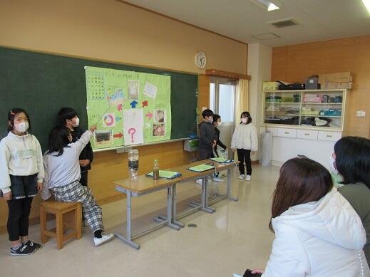 地域の皆様をお迎えして,5・6年生の「海と生きる探究活動」のまとめとして座談会を開催しました。グループワークでは「唐桑の未来を考えよう~魅力・活気・希望あふれる唐桑にするために~」をテーマに,子どもたち個々の探究活動を踏まえた自分なりの考えや思い,実現させたいことやその方法などについて話し合いました。地域の方々や探究コーディネーターからは子どもたちの考えに対し,たくさんの質問やアドバイスをいただきました。地域の皆さんの,子どもたちに対する期待度が伝わってくる座談会となりました。講評をいただいた探究コーディネーターからは,子どもたちの探究について,「身近なところから考え,行動していたこと」をお褒めいただきました。また,これからは「やりたいことを理想としてイメージして結びつけて,これからも探究を楽しんでほしい」とアドバイスいただきました。