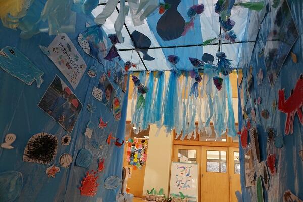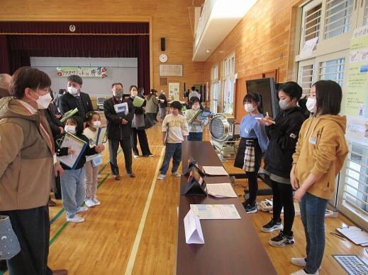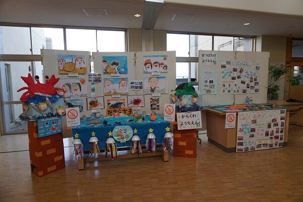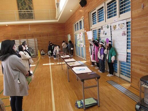 桑の葉児童会のお祭り「桑の葉祭り」を実施しました。開会式では計画委員が工夫を凝らした全校ふれあいゲームで盛り上がりました。その後,進行の係から「重大発表」のアナウンスで,新生唐桑小学校のキャラクターの発表があり,3年児童の発案した「からっちゃ」が紹介されました。ふれあいタイムでは,ゲーム,イラスト,スライムやビーズ作成などの体験ができるコーナーもあり,全校児童が交流し楽しみました。近隣の幼稚園の子どもたちや御世話になった方々にもおいでいただき,充実した時間を過ごすことができました。