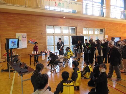 畑の活動でお世話になった方々をお呼びして感謝の会を行いました。会の準備や進行は1・2年生が分担して行いました。ジャガイモやサツマイモ,大根を植えたり,収穫したりする活動を思い起こしながら,お世話になった方々への感謝の思いを持って,ふかしたサツマイモをみんなで味わいました。最後は1・2年生がお礼の歌をプレゼントしました。お世話いただいた方々も子どもたちも,笑顔の会となりました。