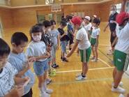 それぞれの学年に分かれ,互いに自己紹介し,ゲームや学校探検をしました。