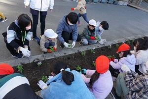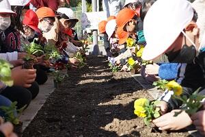 朝はずいぶん冷え込みましたが,天候も良く,緑化活動日よりとなりました。1・6年,2・5年,3・4年に分かれて花壇にパンジーの苗を植えました。みんなで声を掛け合ってきれいに咲いてくれることを願いながら大切に植えていました。花壇の作業のあとは,校庭の石拾いをしました。