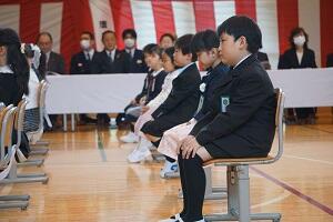 新生唐桑小学校1年目の入学児童です。校長やPTA会長さんの話,ご来賓の皆様の「おめでとうございます」の声に,「ありがとうございます」と応える反応がかわいらしい元気いっぱいの1年生です。