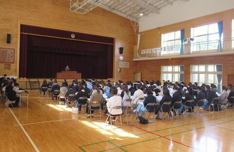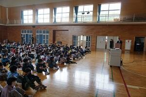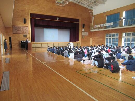 子どもたちは,校長の話にうなずいたり,声を出して反応したりしながら,真剣に聞いていました。これからも夢を持てるよう指導支援して参ります。