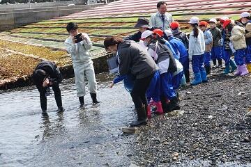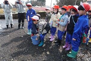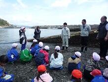 2年生の子どもたちが石浜漁港で鮭の稚魚を放流しました。3年生が育てていた稚魚を引き継ぎ育てていた鮭たちです。大きくなって戻ってくることを願って海に放しました。