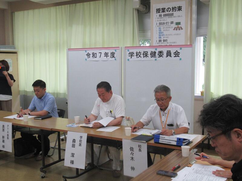 学校市保健委員会の委員会活動の取組の紹介の後、定期健康診断の結果や体力向上の取組などを報告・協議し、森田先生からは熱中症対応、子宮頸がんワクチン、コロナ感染状況について御指導・御助言をいただきました。