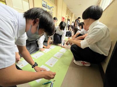 9月4日(木)、学級活動の時間に、1・2年生は新人大会に向けて自分の目標を考え、仲間に向けたメッセージをまとめました。3年生は、後輩への応援メッセージを心を込めて届けました。