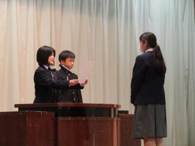 続いて、学校市長から各委員会の代表生徒に任命書が渡されました。