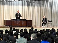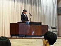 約2週間の冬休みが明け、1月8日(木)に冬休み後全校集会を行いました。集会に先立ち、1月から育児休暇の代替として勤務する津田先生の披露式を行いました。集会では、代表生徒が冬休み中の取組を振り返り、部活動や学習への意欲、そして今後の目標について発表しました。