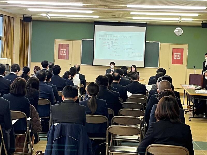 今回は研修会という形で、気仙沼市子ども家庭課児童福祉係の職員様をお招きし、「要保護児童対策地域協議会(要対協)の役割と地域連携」をテーマに御講話をいただきました。「要対協とは何か」から「気仙沼市における要対協の取組」まで、具体的な事例を交えながら大変分かりやすく説明していただきました。