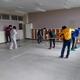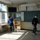 新年度に向けて体育館も準備中、。体育館の照明工事も進んでいます。
