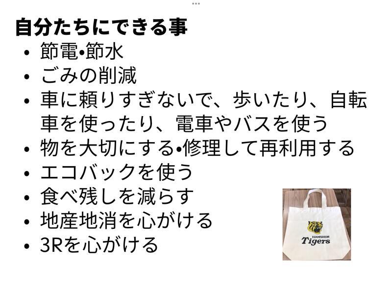 私たちは、総合的な学習の時間に地球温暖化の現状と温暖化を防ぐために自分たちにできる事を考えました。