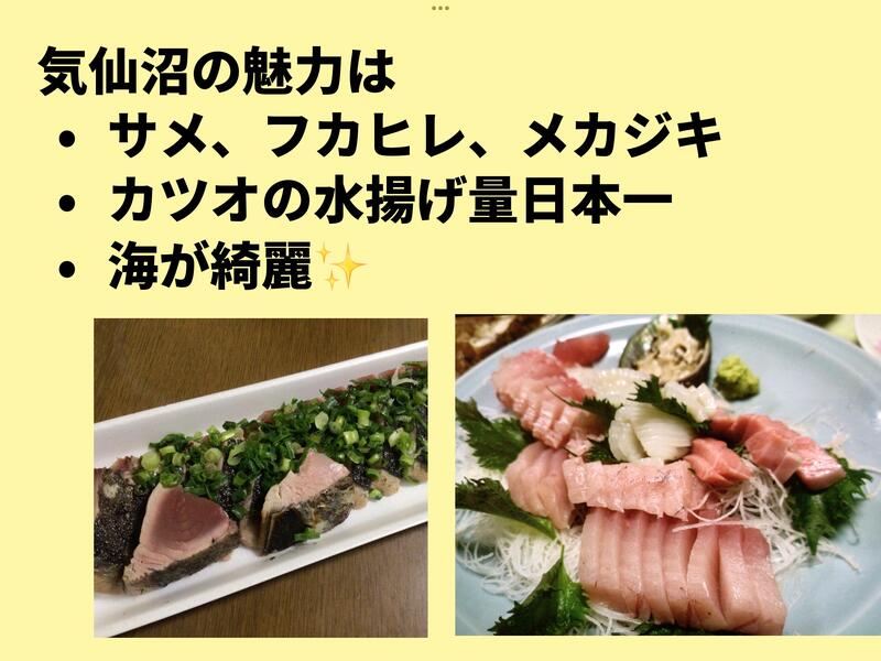 私たちが人口減少・少子高齢化を少しでも止めるためにできることとして実際にポスターを作りました。ポスターに気仙沼の魅力を書いたので、みんなに知ってほしいです。