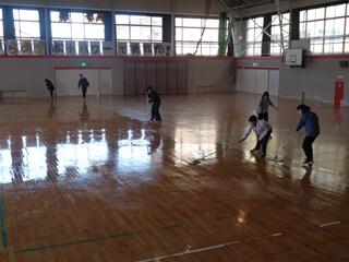 ・卒業式に向けて、体育館のワックス掛けを行いました。低学年部の先生方と6年生・7年部の先生方が中心となって行いました。