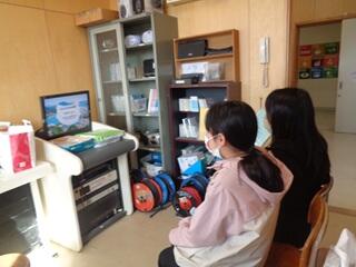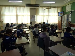 ・当時の様子が分かる写真資料を基に、避難所生活の様子、津波の恐ろしさ、命を守ることの大切さなどについて子供たちに伝えました。各クラス、放送室では、放送委員会の子供たちが真剣に話を聞いていました。