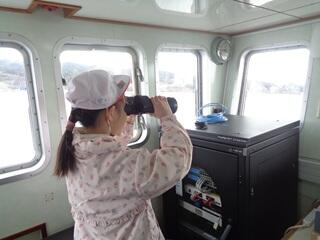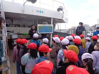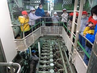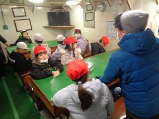 ・1年生が、国語の学習の発展として、マグロ船の見学に行ってきました。冷凍庫、エンジンルーム、操舵室、船室、お風呂場など、様々な場所を見学させてもらいました。