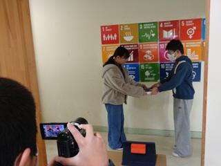・環境教育授業では、地球温暖化と環境の変化について映像を見ながら教えていただき、気候危機を解決するために自分たちにできることをグループで考え、発表しました。これからの環境をどのようにして守っていくのかを考えるよい機会となりました。
