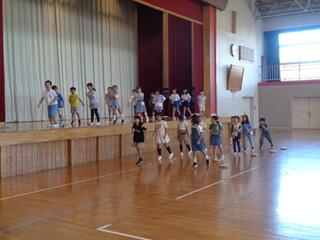 ・夕べのつどいの進行担当は、本校でした。一番はじめに体育館へ集合し、他の団体を静かに待ちま した。担当の子供たちが、それぞれの役割をしっかりと果たしました。最後にみんなでじゃんけん列車を楽しみました。