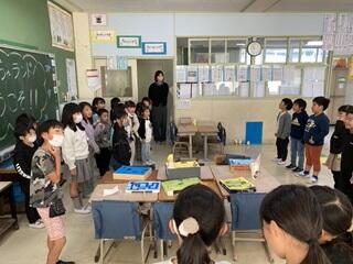 ・4年生が地域でワカメの養殖を行っている方を講師に、ワカメの養殖について学びました。養殖の仕方は、地域によって違いがあることや、地区で行っている養殖のやり方等について教えていただきました。