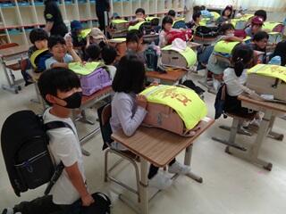 ・今日は、小中連携引渡し訓練を行いました。地震後に大津波警報が発令され、警報解除後に引渡しを行うという想定で行いました。