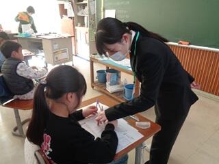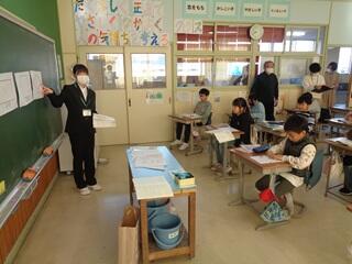 ・多くの先生方を前に少し緊張していたようですが、落ち着いて授業を進めていました。授業後は、先生方から紙面で助言をいただきました。これからの自分の経験に是非生かしてほしいと思います。