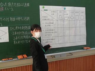 ・教育実習最終日となりました。今日は、算数の授業を先生方に参観してもらいました。