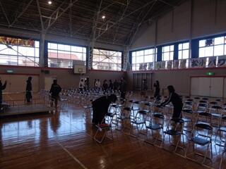 ・明日は、令和7年度の卒業式です。卒業生の教室を始め、全職員で会場作りを行いました。卒業生にとって、また、卒業生の保護者の皆様にとって最高の卒業式となるよう、職員一丸となって準備を進めます。