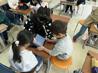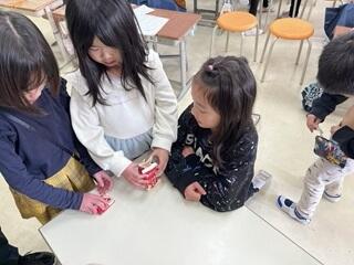 ・小さなお兄さん、お姉さんになって、1年生になったらすぐに行う給食の牛乳パックの片付け方や、タブレットの使い方を教えていました。ちょっぴり頼もしく見えました。