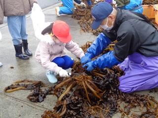 ワカメの刈り取り