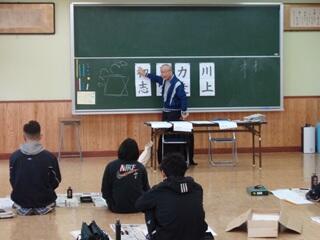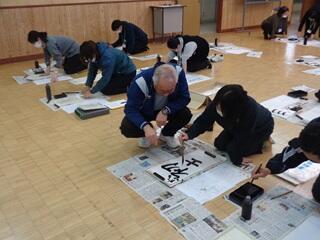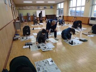 ・今年度の書きぞめ指導の前に、職員研修として書きぞめ講習会を行いました。講師は、本校の元校長先生にお願いしました。