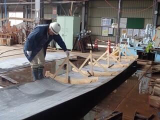・職人さんが鉄板を曲げる様子や、大きな船の修理、新しい船ができあがる様子などを見せていただきました。