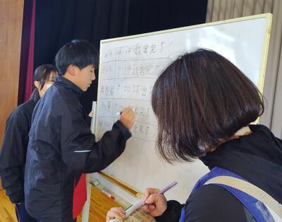 12月2日(火)3学年最後の授業参観・学年懇談会がありました。5・6時間目は3年生が個人探究の成果を6グループに分かれて発表しました。当初は1・2年生からの質疑応答にも答える予定でしたが,現在の健康面の状況を考慮して,1・2年生は紙面による質問・感想発表としました。全グループをまわって1~2名の発表を参観しました(全員の発表が聞きたかったですが)。ここまでの探究の成果が十分に表れた発表でした。自分が興味・関心を持ったことを追究していく姿勢は,大人になってからも大切なスキルです。いつまでも学び続ける姿勢をこれからも育んでほしいと思います。